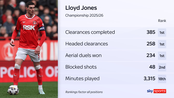 Lloyd helped Charlton record a club-record 23 clean sheets last season in League One. While it has been a step up this term, the 6ft 3in defender tops the Championship metrics for clearances and aerial duels won, highlighting his combative approach.