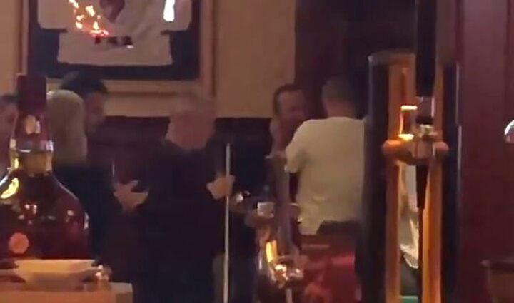 Woodward appeared to take the prank well and responded by laughing at the supporters before continuing to socialise with the rest of his group.