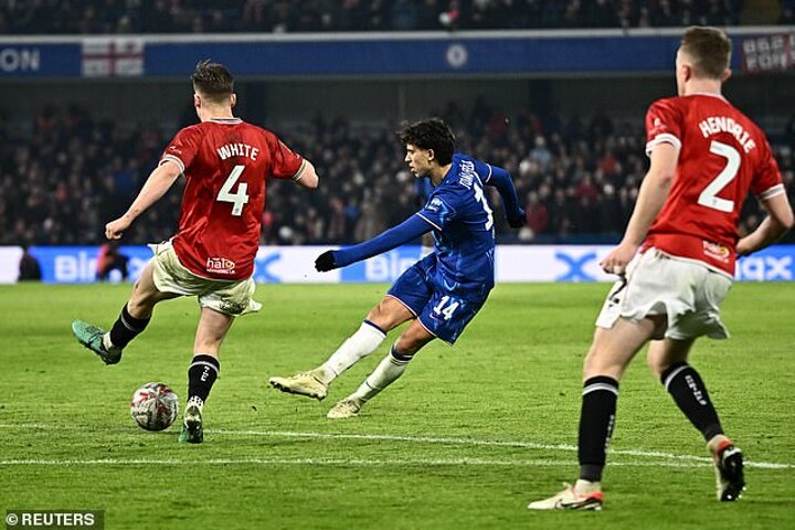 A second goal was quick in arriving, with Nkunku burying the rebound after Burgoyne blocked a drive from Veiga, and the third came from Tosin, picking out the top corner from the same distance as his opener.