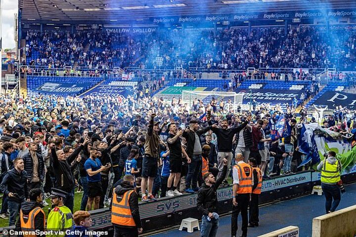 After the final whistle of their defeat to Blackburn, hundreds of supporters flooded on to the pitch in protest and unfurled banners demanding ‘#BSHLOUT’.