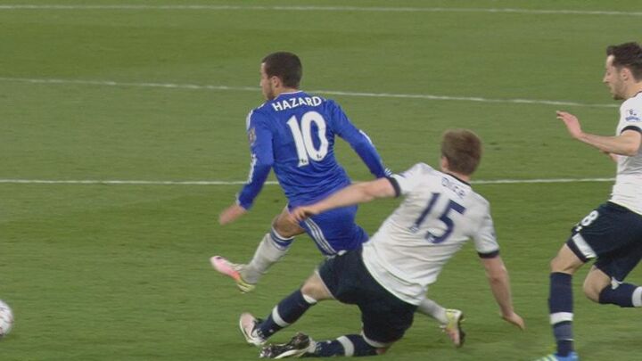 Incredibly, however, there were no red cards issued by referee Mark Clattenburg, despite Erik Lamela deliberately treading on Cesc Fabregas' hand and Eric Dier cleaning out Hazard late on.