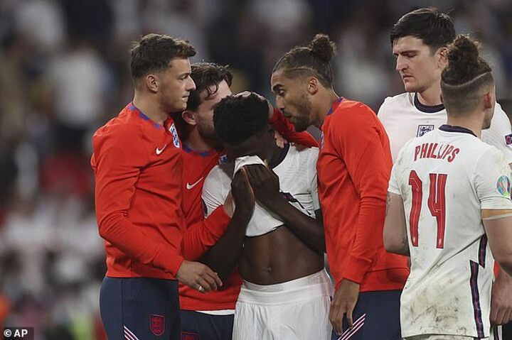 Saka was left heartbroken after seeing his spot-kick palmed out by Gianluigi Donnarumma, with the Three Lions' stellar campaign brought to an end in the cruellest of fashions at Wembley.