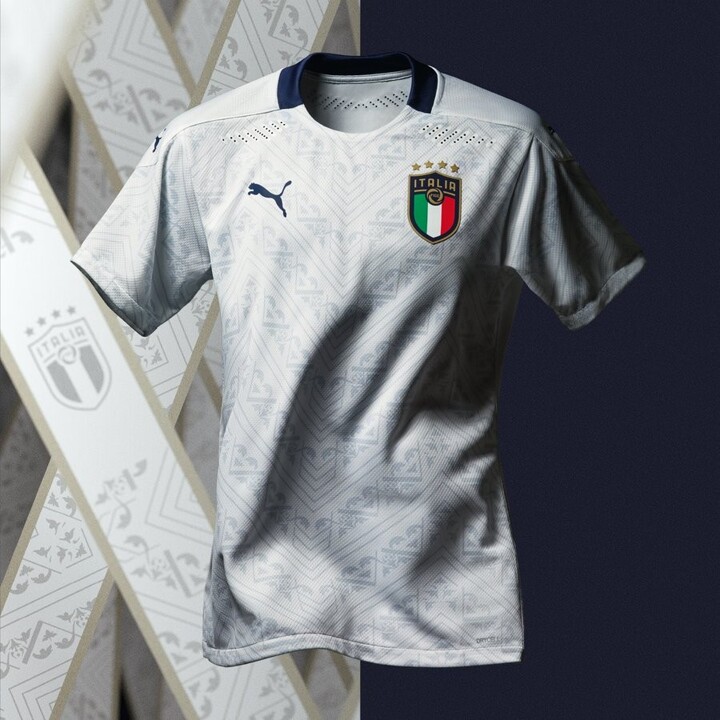 Italy have gone for some Renaissance-themed decoration as the background of their white away shirt, and the results are fantastic.