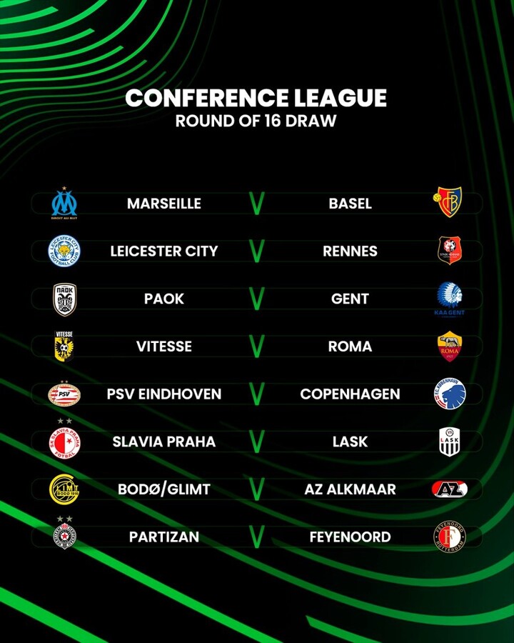 Conference League Last 16 draw: Leicester vs Rennes, Paok vs Roma