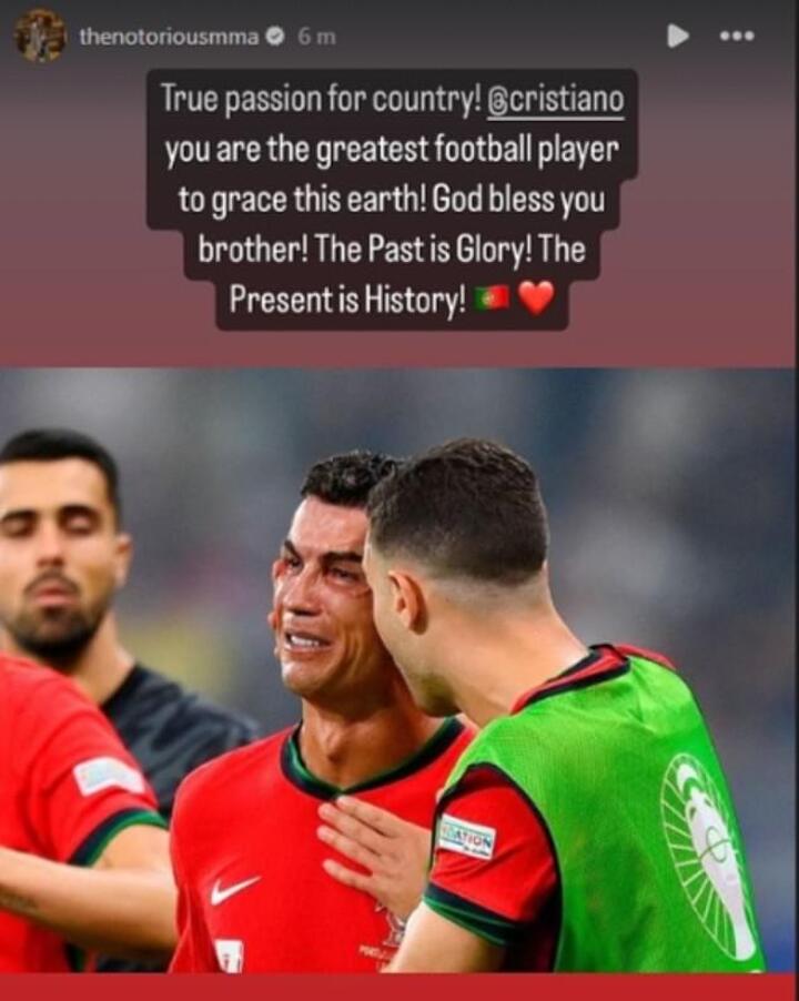 UFC icon McGregor was quick to comment on Ronaldo as he sobbed at the Frankfurt Arena and posted a heartfelt update on his Instagram story in response.
