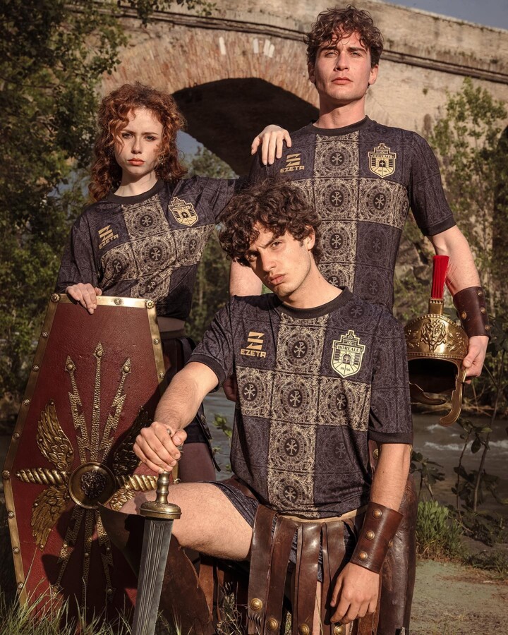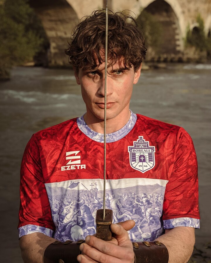 Home: Italian club FC Boreale have gone way back in time to inspire a batch of kits that are smothered with ornate designs based on historic works of religious art. Treading a fine line between flowery flamboyance and outright gaudiness, Boreale have walked that thin line well with a home kit that draws inspiration from the Battle of the Milvian Bridge, which took place in Rome in 312 AD.
