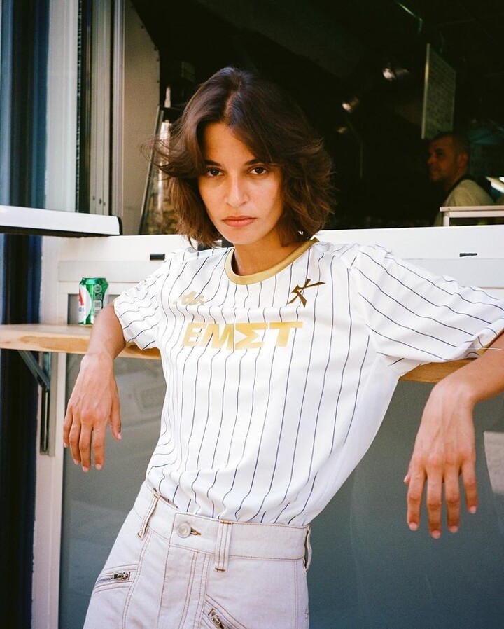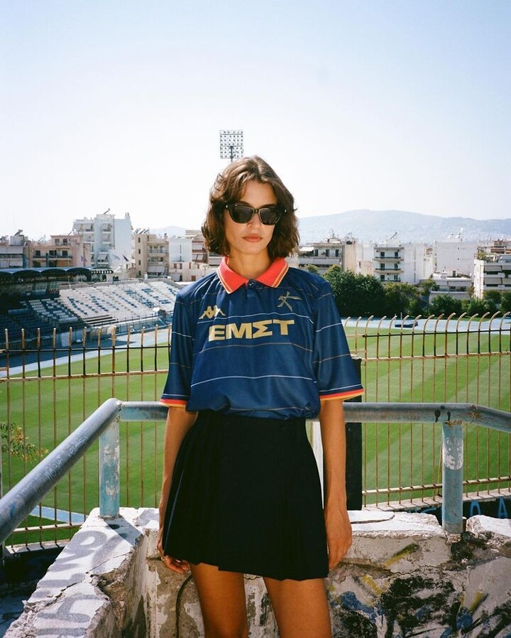 Away: A lesson in minimalism, the away shirt has fine navy pinstripes adorning a fresh white bed which is all set off nicely by the burnished gold trim. Just to top the whole thing off, the club are also sponsored by the National Museum of Contemporary Art Athens (ΕΜΣΤ) -- it's not often a football club wears the name of a cultural institution so proudly.