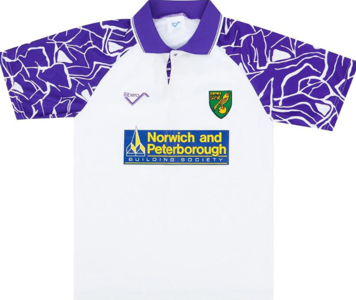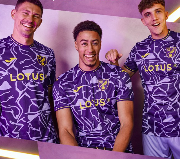 Third: For reasons unknown, Norwich have chosen to resurrect one of their ugliest-ever kits by recycling the strange purple "crackle" graphic that first appeared on the sleeves of their old 1992-94 Ribero away kit and plastering it all over their new third shirt. The result is a barrage of zigs, zags, crinkles and crags that are already starting to induce a migraine.