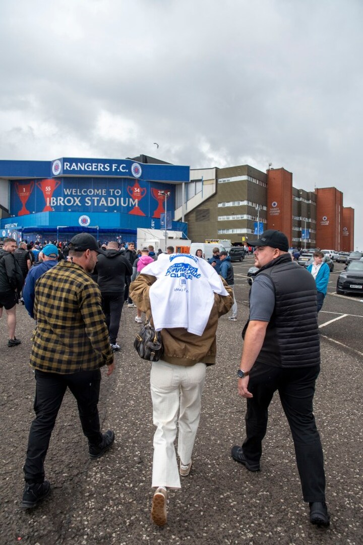 The adult performer went into Ibrox with her heavies, entering at the Sandy Jardine Stand.