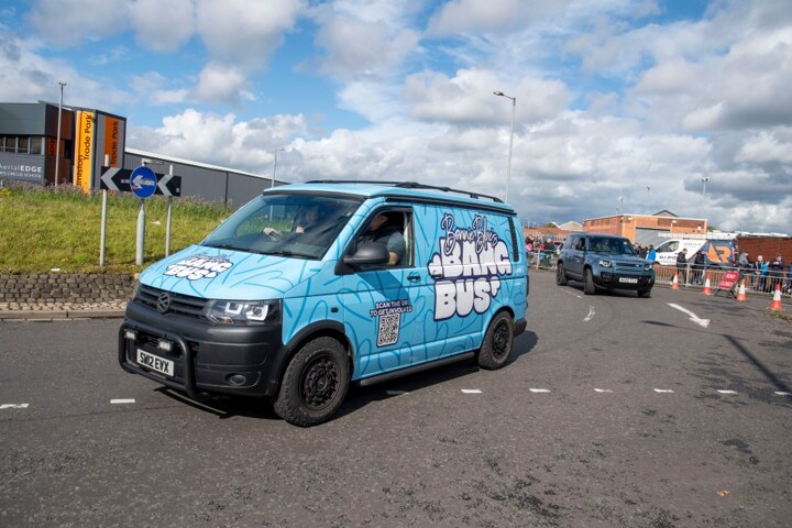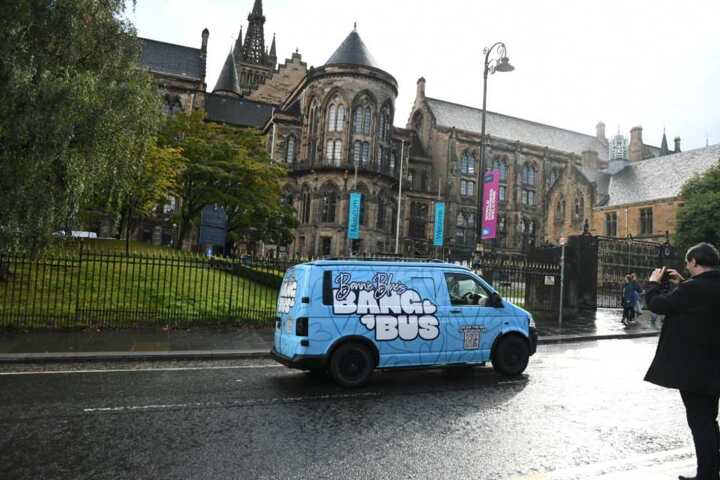 Her Bang Bus did a lap and parked outside Ibrox subway station before punters were swarmed around it.