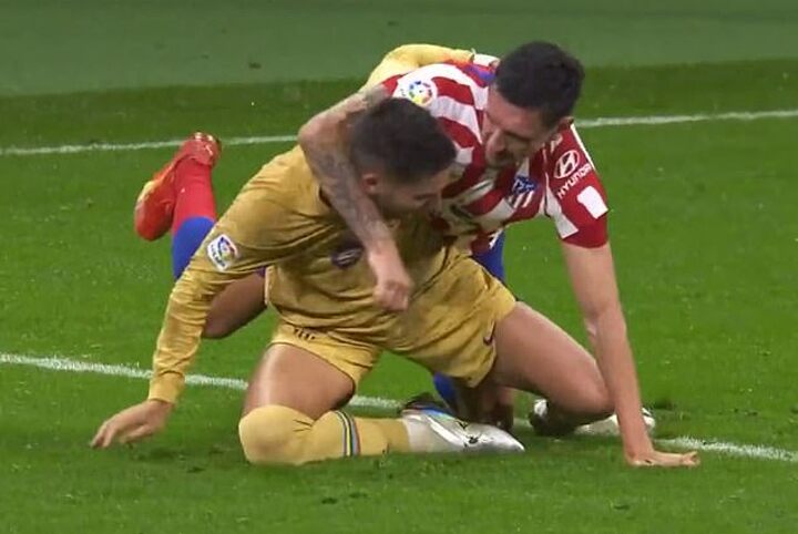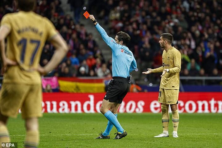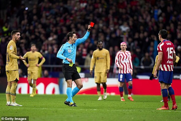 It came at the end of an ill-tempered game that saw Atleti players swarm the ref after Ousmane Dembele scored the only goal of the game due to complaints of a foul by Gavi in the build up.