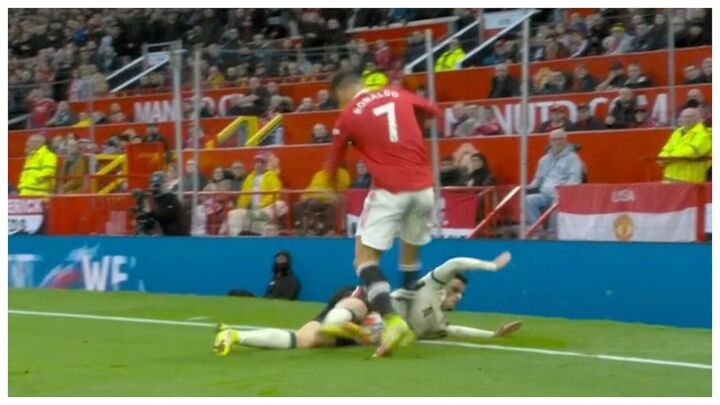 Then, the Manchester United star fouled Jones, who fell on the pitch, only to be kicked out by a frustrated Ronaldo who couldn't bear seeing his team being thrashed in the Premier League derby.