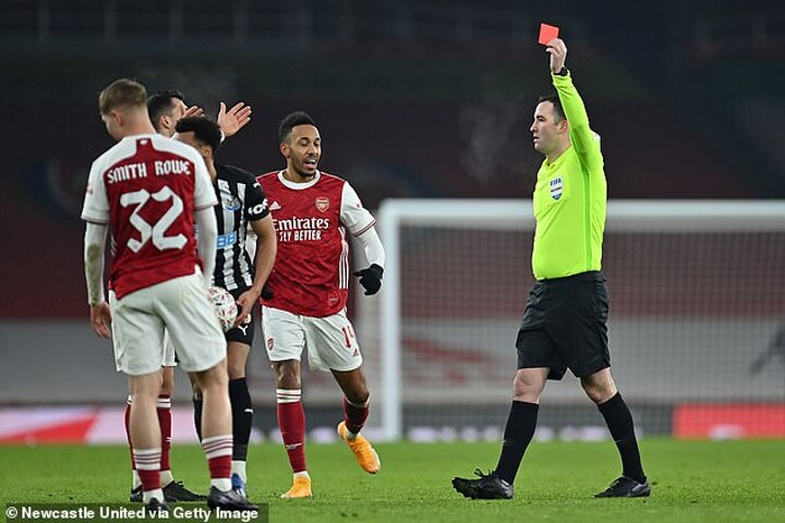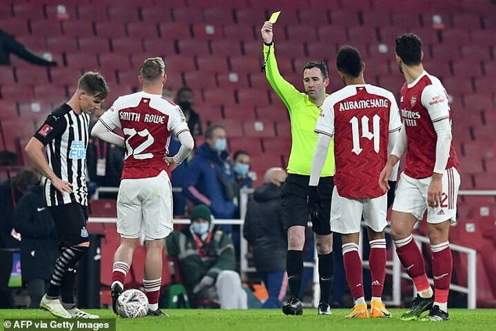 Disaster appeared to have struck when Smith Rowe was shown a red card by Chris Kavanagh for a challenge on Newcastle midfielder Sean Longstaff in the dying seconds of normal time, only for the referee to downgrade the decision to a caution after consulting the VAR pitch monitor.