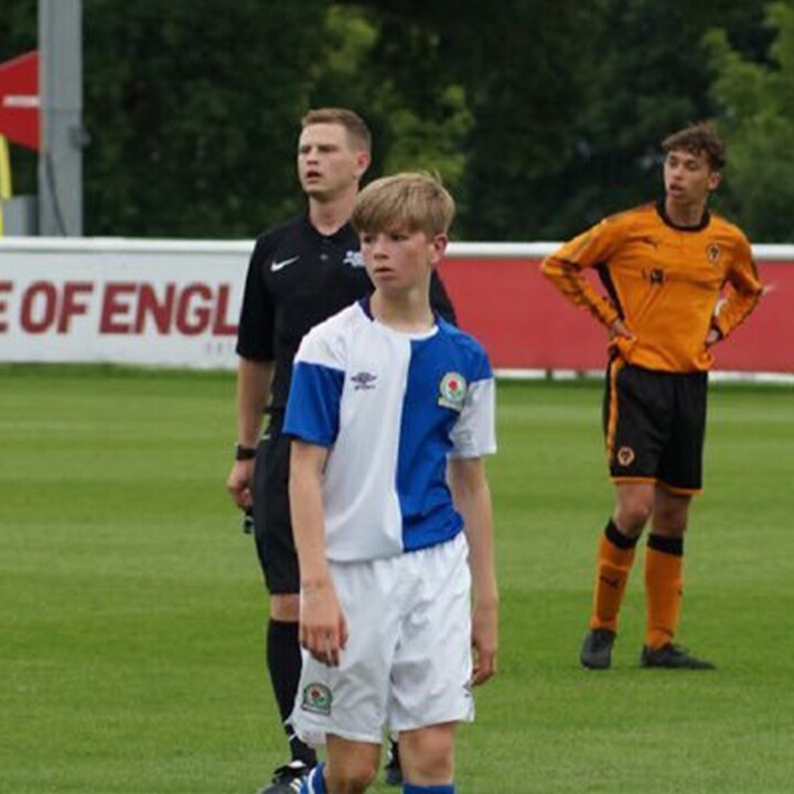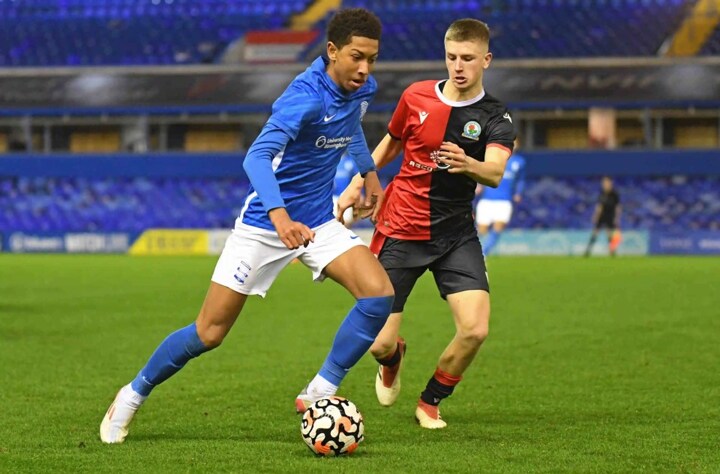 The two pictured are duelling for the ball in a youth game between Blackburn and Birmingham City.