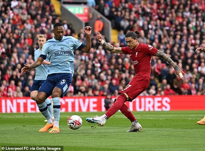 There was another miss shortly after, a failure to connect with his head from Mohamed Salah’s quite beautiful ball. Brentford defended superbly and asked plenty of questions of Liverpool, but had Nunez been ruthless, they would have been put to the sword.