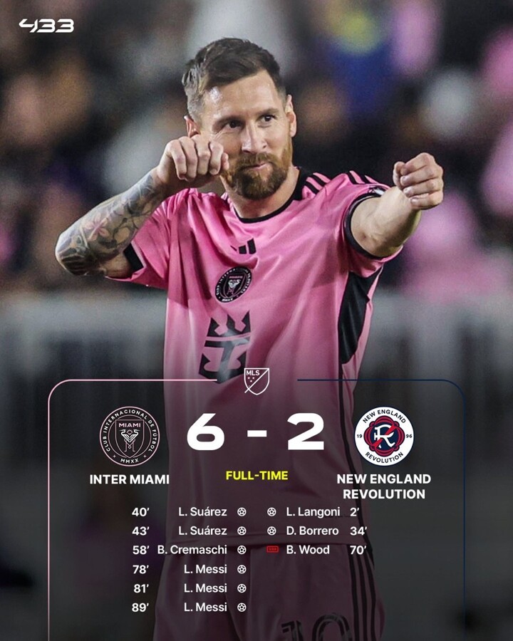 Article 4: Inter Miami 6-2 New England: Messi scores another hat-trick, Suarez nets double