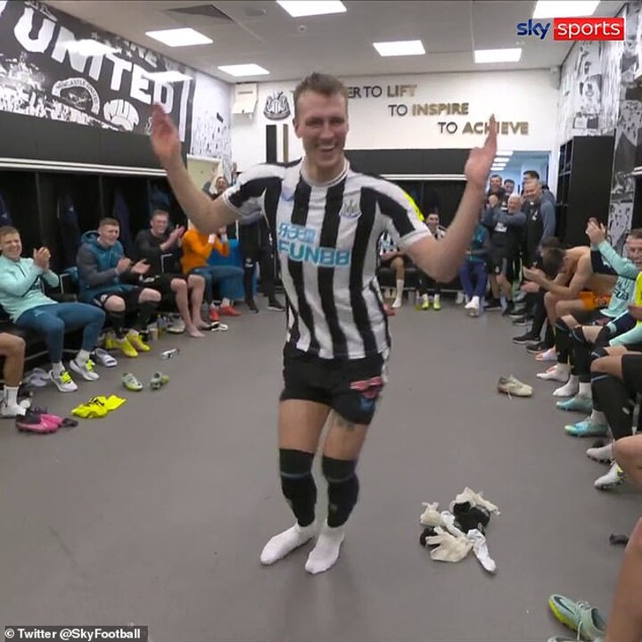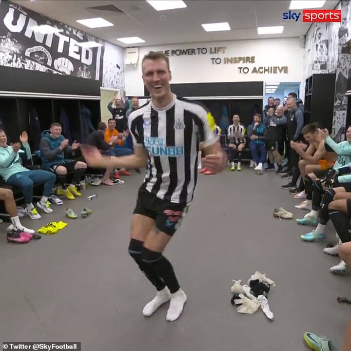 Dan Burn celebrated scoring his first Newcastle goal by showing off his hilarious dance moves in the dressing room.