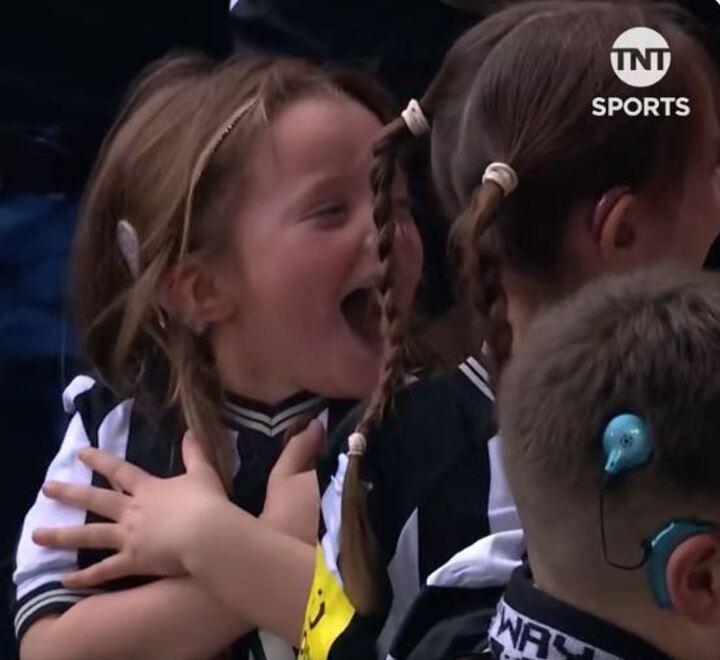 TNT Sports' cameras captured one young girl in the crowd open-mouthed and smiling with joy at the central defender's action.