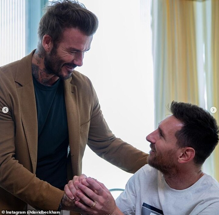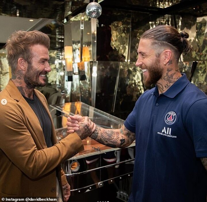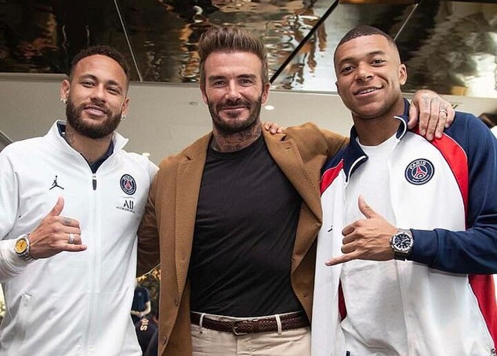 'Always good to catch up with the @PSG family,' Beckham wrote alongside pictures of himself greeting Kylian Mbappe, Neymar, Lionel Messi and Sergio Ramos.
