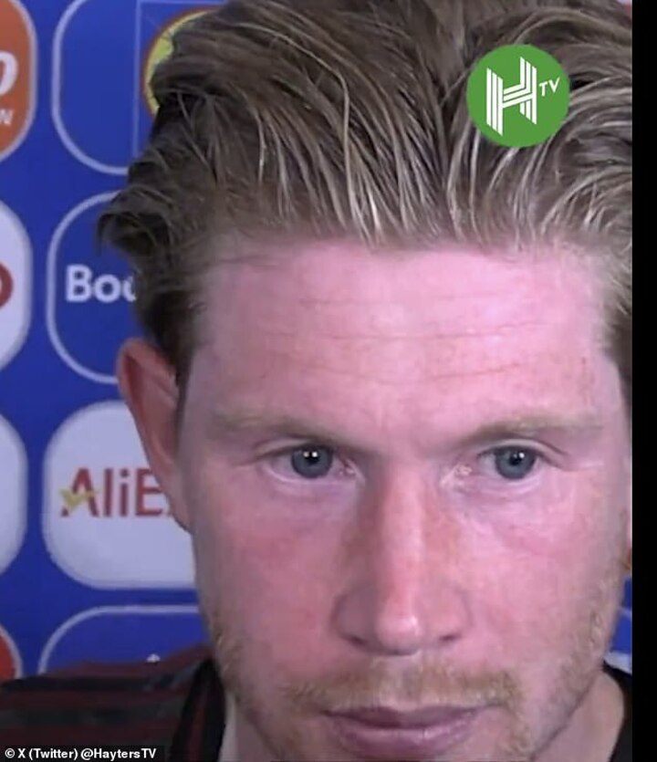 De Bruyne appeared to be unhappy with the suggestion and looked at the journalist briefly before raising his eyebrows and turning away.