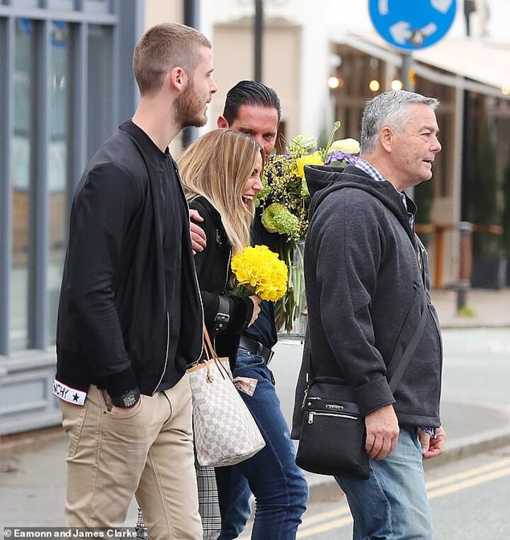 Manchester United goalkeeper David De Gea trotted out for lunch on Sunday following his side's victory over Watford, with fiancee Edurne and Red Devils coach Emilio Alvarez.