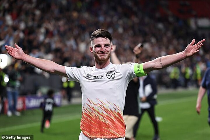 Declan Rice sprinted 10 yards, then 20, then 30. He got faster, and faster, and faster. Until finally, West Ham's favourite son was in front of the fans and on his knees, unable to contain his emotions.