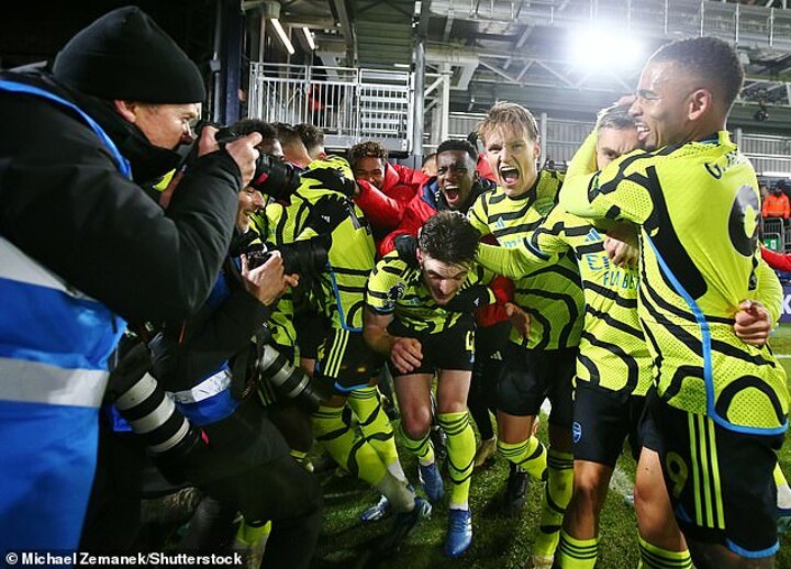 The celebrations arrived as a welcome relief to the club’s injury troubles which are mounting with news that Takehiro Tomiyasu will miss a minimum of four weeks with a calf injury.
