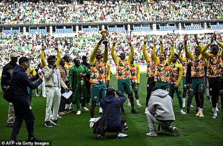 The likes of Edouard Mendy and Iliman Ndiaye were in attendance as the Senegal squad took the trophy onto the field, and they held it high in the stands too as their fans cheered.
