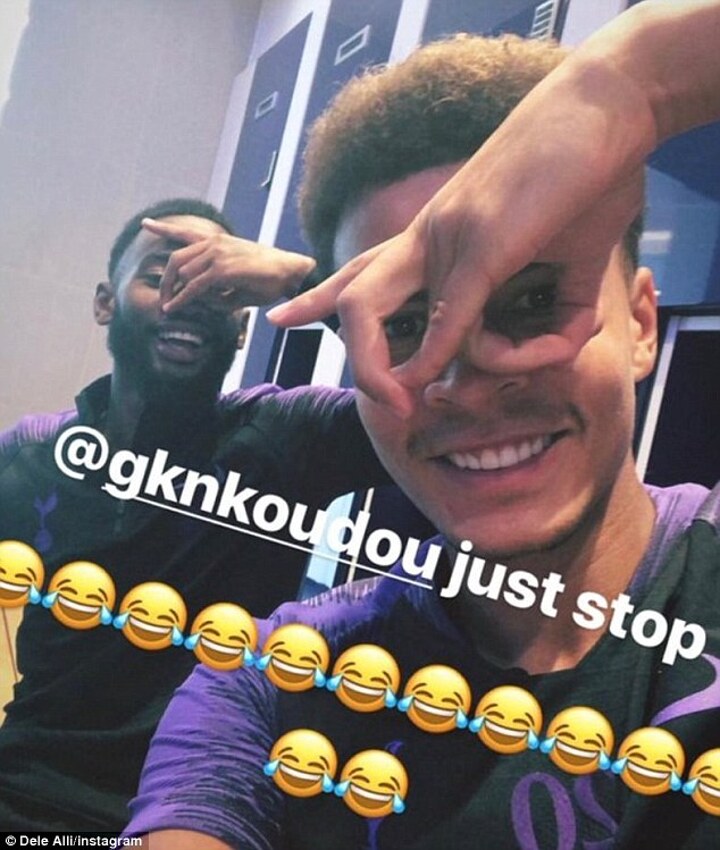 The Tottenham star revealed a picture of himself performing the tricky hand sign on Wednesday while team-mate Georges-Kevin N'Koudou spectacularly failed at attempting the trick in the background.