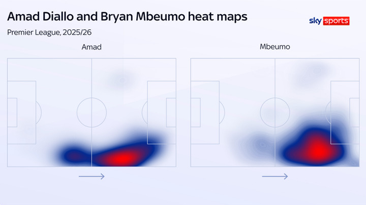 Amad and Mbeumo have forged a strong understanding on United's right, playing as wing-back and winger respectively and combining to good effect in the final third.