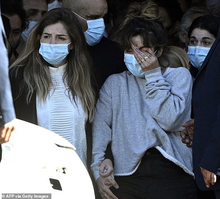 Dalma and Giannina were seen wiping tears from their eyes as they left for his funeral on Thursday.