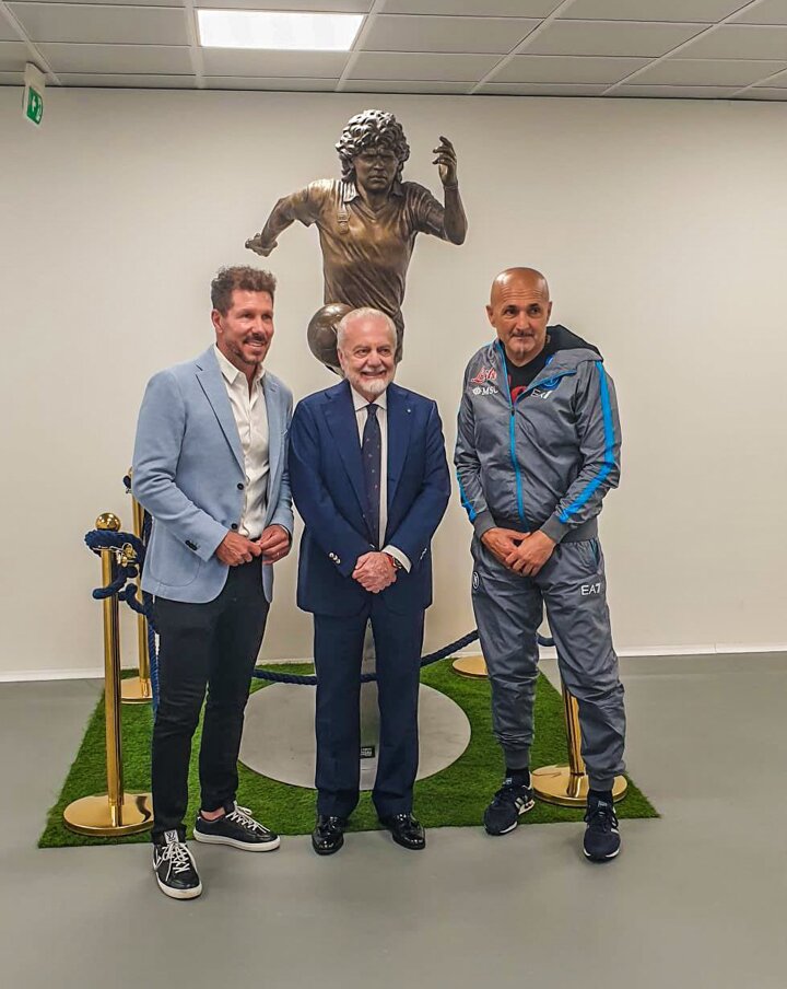Ahead of the match, El Cholo was pictured with Napoli President Aurelio de Laurentiis and Napoli coach Luciano Spalletti, before heading to the stands to watch on with the rest of the Stadio Diego Armando Maradona.