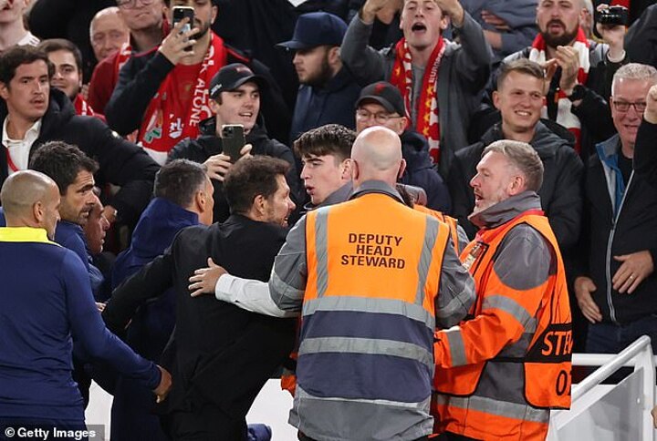 That was only the start of the drama, however, as Simeone was given a straight red card, having become embroiled in a fracas close to Atletico's dugout: stewards and members of the crowd jostled with the Argentine and members of his coaching staff.