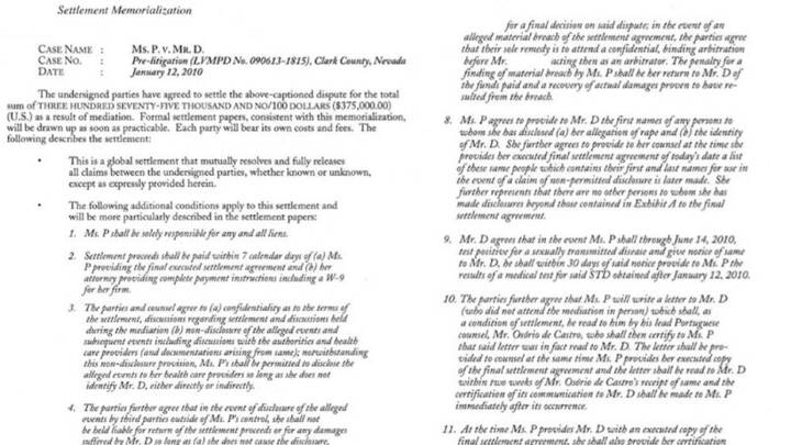 German magazine Der Spiegel has published images of the secret agreement signed by Cristiano Ronaldo and Kathryn Mayorga on July 12, 2010 following an alleged rape incident that took place in Las Vegas in 2009. The agreement, signed by both parties, obligated Mayorga to remain silent about the incident in return for a payment of $375,000.