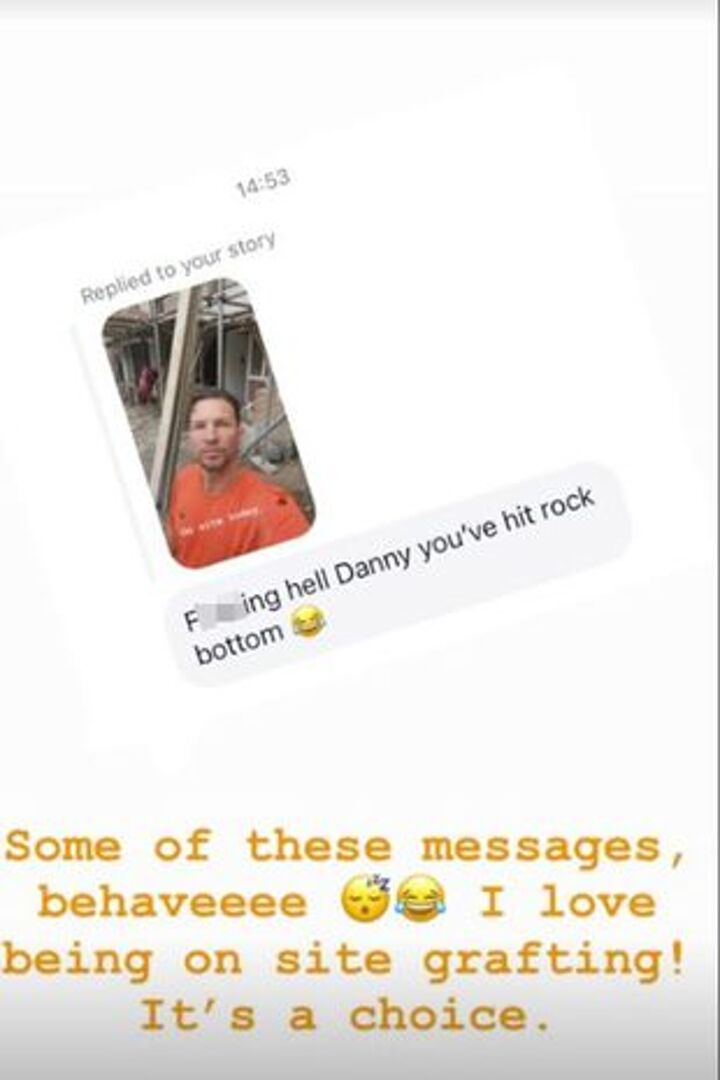 His career choice prompted some negative comments, which Drinkwater felt the need to respond to. Sharing one which read "F***ing hell Danny you've hit rock bottom", he replied: "Some of these messages, behave. I love being on site grafting! It's a choice."