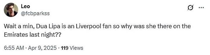 'Wasn't Dua Lipa a Liverpool fan,' one supporter wrote with a pondering emoji.