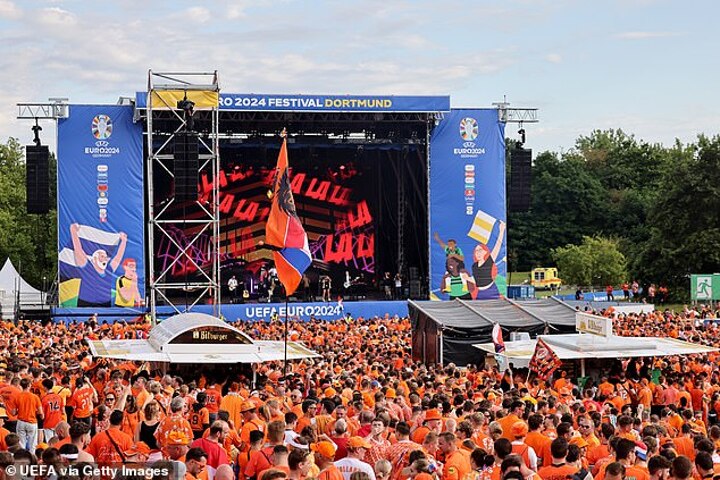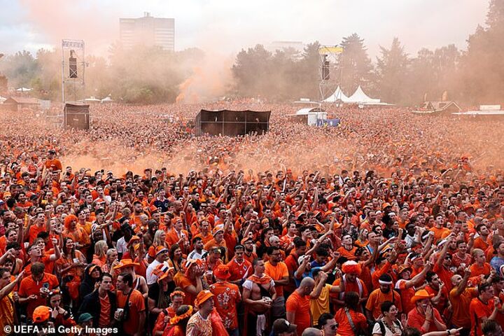 Netherlands supporters watching in the fan zone were deal an agonising defeat when Ollie Watkins came off the bench to score a 90th minute winner for the Three Lions,