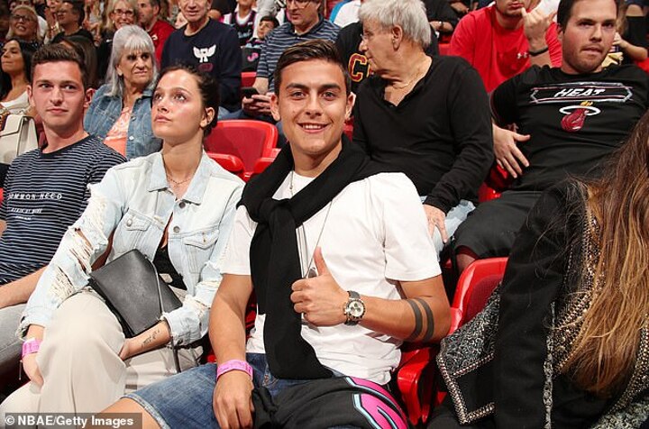 Photographers at the event soon honed in on the Argentine starlet, and Dybala was all too happy to pose for pictures while taking his courtside seat at the clash.