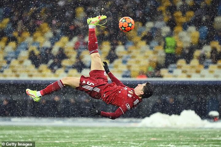 As the ball looped up into the air, Lewandowski adjusted his body and his acrobatic effort nestled into the net, even though close-ups on the replay showed his laces were undone.