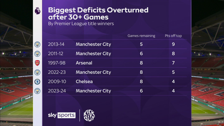 He told Sky Sports: "It's nine points, but Manchester City have a game in hand and they've got to play them, so it can go down to three.