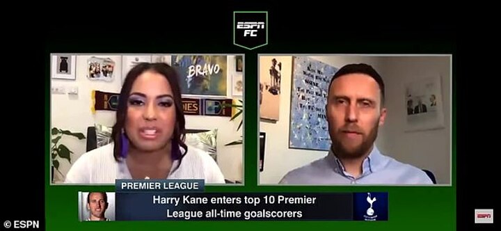 Leaked footage shows ESPN FC's Alexis Nunes and Mark Ogden beginning to talk about Kane's performance and career before halting the conversation, and in between takes they then discuss the way his voice sounds in disparaging terms, with an off-screen producer also using insulting words about the England captain.