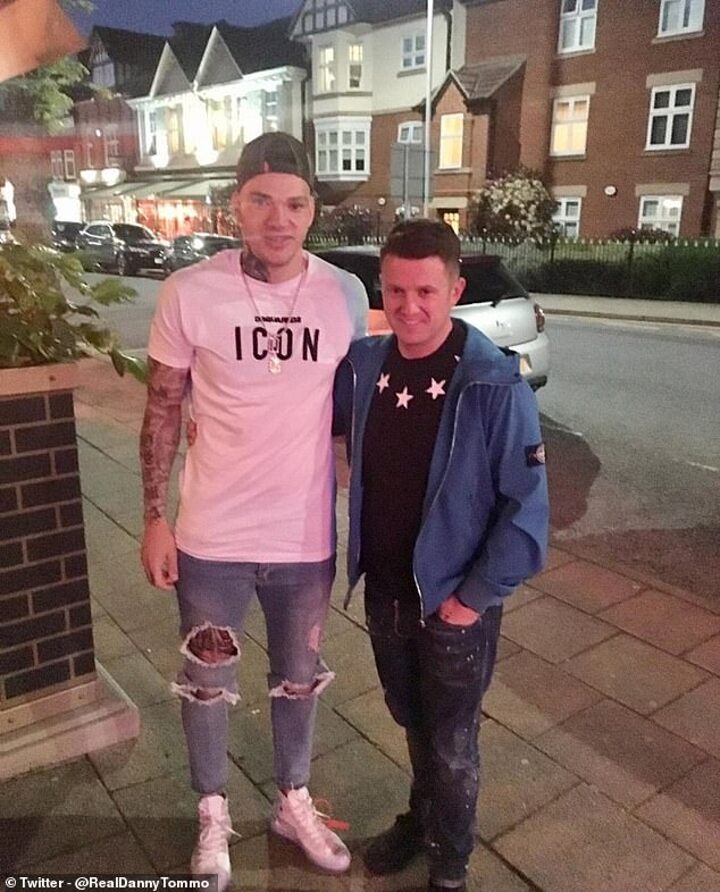 The image was posted by Danny Thomas, @ RealDannyTommo, and was accompanied by the caption: 'Tommy Robinson meeting city's golden boy @edersonmoraes93 last night, has his full support while in Manchester.'