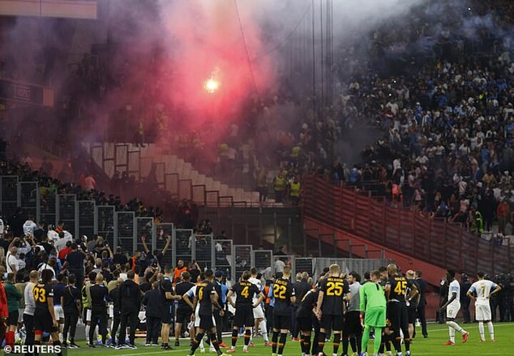 Elsewhere, Marseille's clash against Galatasaray was stopped for nine minutes in the first half as flares among other objects were thrown between supporters.