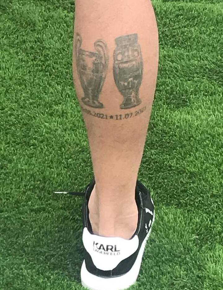 The tattoo on his left calf will mirror the ink he has on his right calf as the 28-year-old defender celebrated his Champions League triumph in 2021 by getting a tattoo of the trophy on his lower right leg.