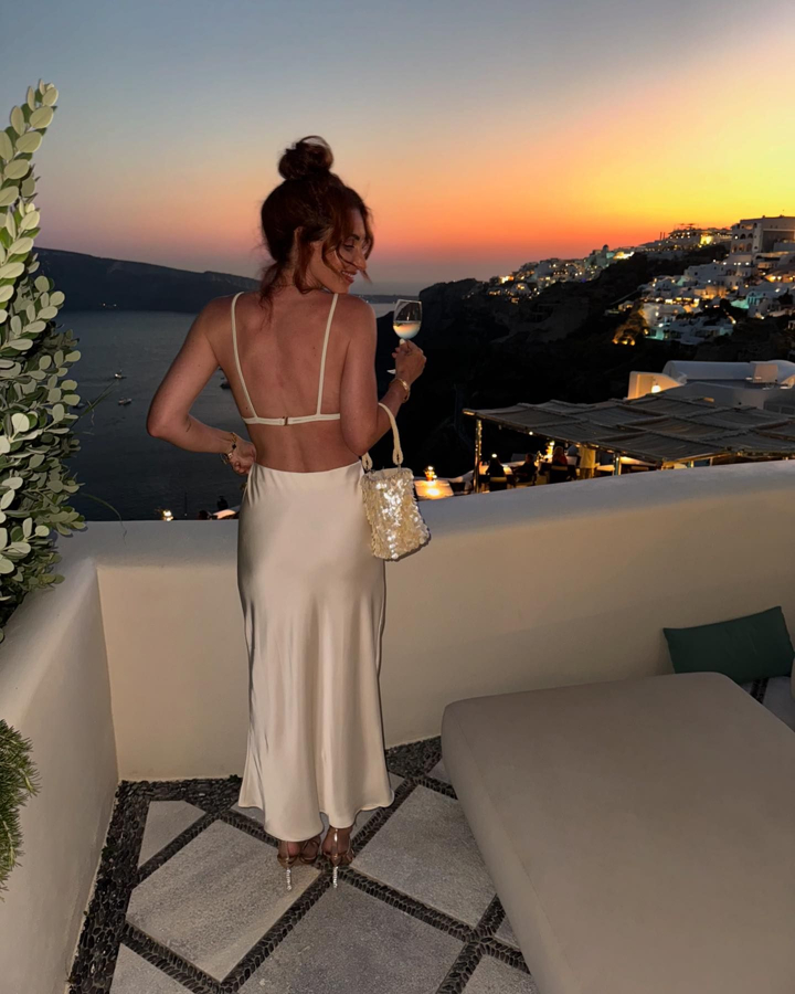 Charlotte, 35, posted a pic of her posing in front of a stunning Mykonos backdrop on Instagram as she enjoyed a glass of wine.