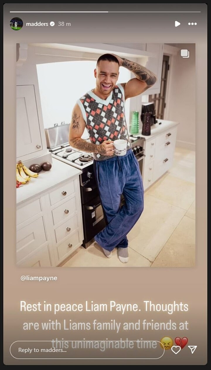 'Reast in peace Liam Payne,' wrote Maddison. 'Thoughts are with Liam's family and friends at this unimaginable time.'