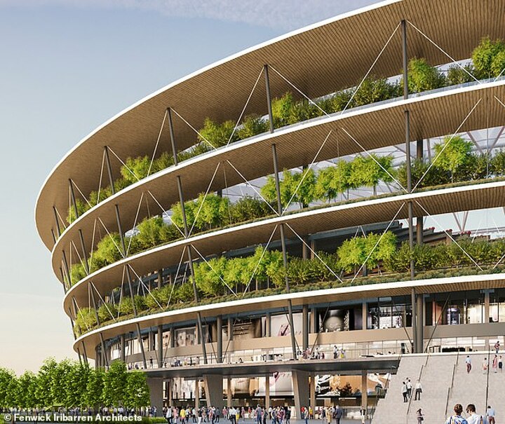 Plans for the 52,000-seater ground showcase an aptly named 'garden' design that see's trees and shrubbery encompass three levels of the stadium.