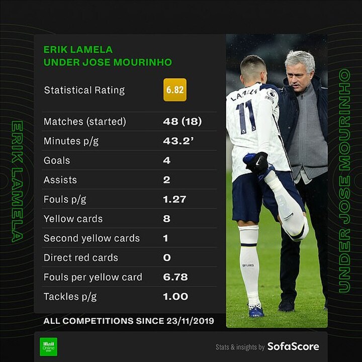 After returning from a hamstring injury last year, Mourinho commented on Lamela's work rate, saying: 'He is a player I like very, very much, I've always liked.