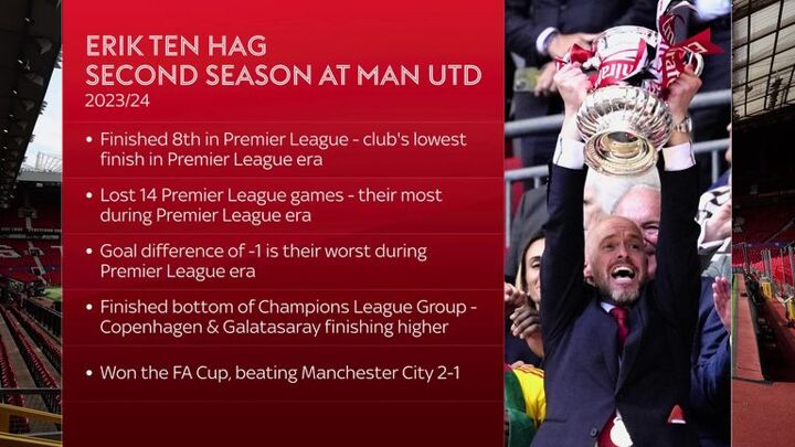The 54-year-old led United to a disappointing eighth-placed finish in the 2023/24 campaign, their worst in the Premier League era, but beat rivals Manchester City to lift the FA Cup - Ten Hag's second trophy in as many years.