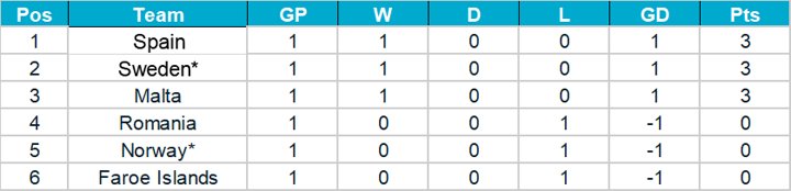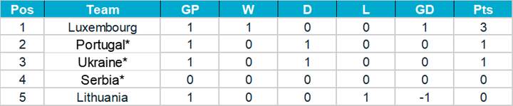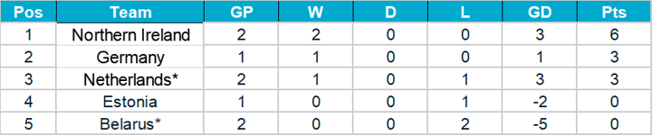 Note: Teams marked with an asterisk are assured of a place in the play-offs thanks to their Nations League performance.